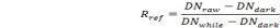 式中,Rref 是校正過的圖像,DNraw 是原始圖像,DNwhite為白板校正圖像,DNdark 是黑板校正圖像。