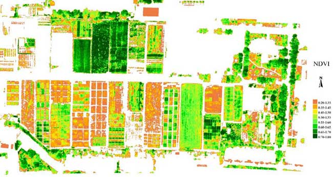 圖1 無人機(jī)高光譜影像下作物長勢分布圖