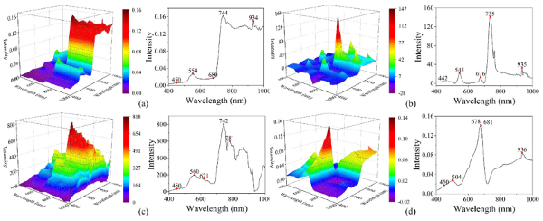 圖6 二維相關光譜分析結果。(a) 10?DAF;(b) 20?DAF;(c) 30?DAF;(d) 40?DAF。