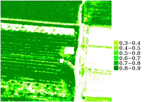圖8 無人機(jī)高光譜影像的NDVI密度分割圖