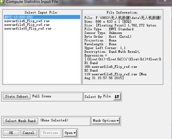 (2) 選擇Basic Tools->Statistics ->Compute Statistics,在文件選擇對話框中,選擇統(tǒng)計文件并計算統(tǒng)計參數(shù),如圖9所示。