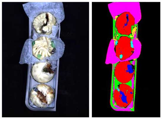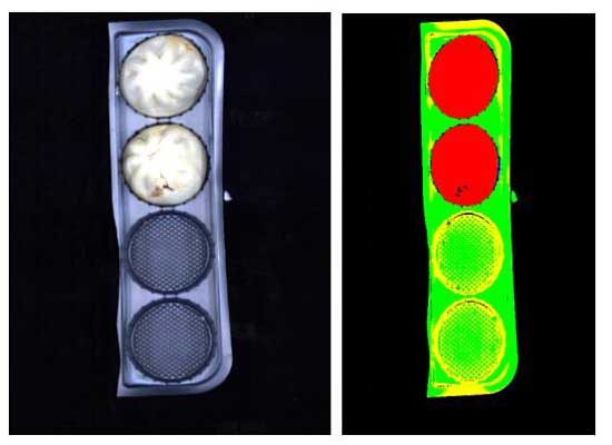本次實驗對包子的混雜金屬、混雜玻璃片、混雜塑料片、包子完整情況(是否有餡露出來)、有無包裝紙、有何種顏色的包裝紙進行了初步的檢測,目的是為了分辨出包子中混雜的金屬、玻璃片、塑料片,以及是否露餡、是否包含包裝紙和用何種包裝紙對其進行包裝。