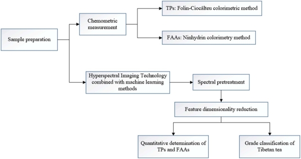 本研究聚焦于藏茶的質(zhì)量檢測(cè),旨在利用高光譜成像技術(shù)和化學(xué)計(jì)量學(xué)方法(如多變量分析)對(duì)藏茶的主要質(zhì)量指標(biāo)(TPs和FAAs)進(jìn)行定量分析以及對(duì)藏茶進(jìn)行分級(jí)研究。該研究提供一種新的茶葉質(zhì)量評(píng)估方式,以滿(mǎn)足日益增長(zhǎng)的藏茶產(chǎn)業(yè)對(duì)高效、精準(zhǔn)檢測(cè)技術(shù)的需求。