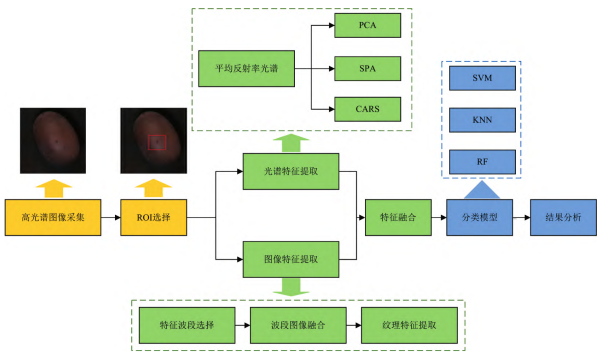 圖4. FHSI技術與化學計量學相結(jié)合的獼猴桃品質(zhì)和成熟度檢測流程