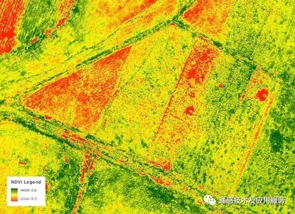 圖4 大田作物的NDVI圖,顏色越綠張?zhí)K越好,越紅長勢越差