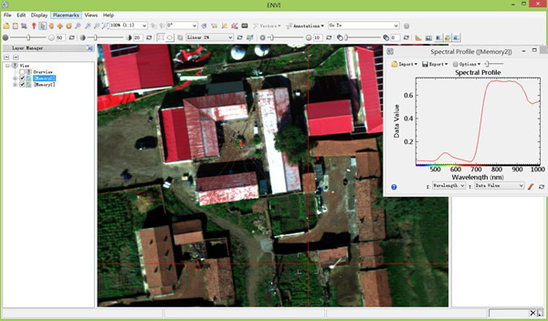 圖2 無(wú)人機(jī)高光譜影像中植被的光譜曲線