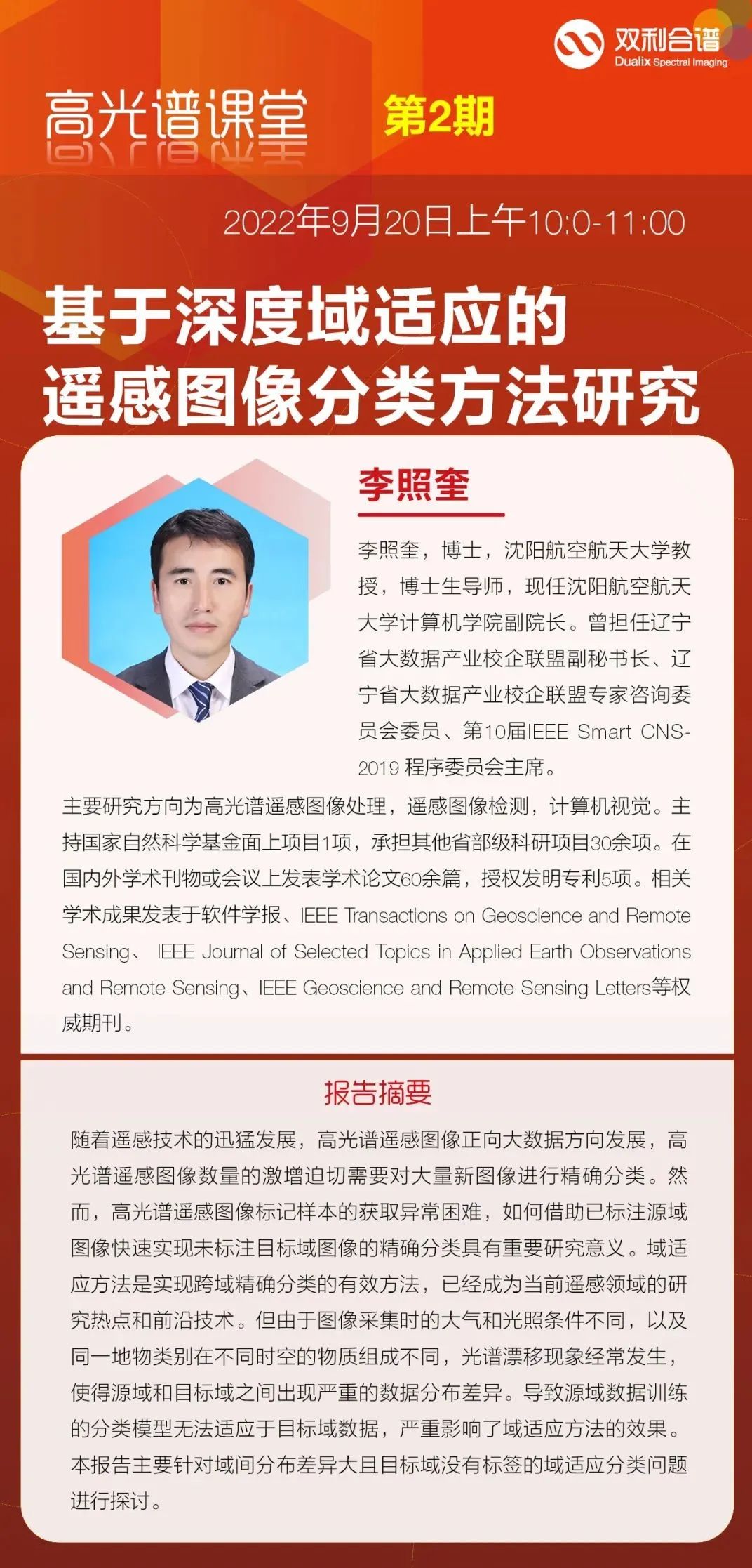 為多方位展現(xiàn)高光譜遙感領(lǐng)域的科研成果和前沿信息,江蘇雙利合譜科技有限公司特別策劃了“高光譜課堂”線上專(zhuān)題講座,我們將定期邀請(qǐng)高光譜遙感相關(guān)學(xué)科領(lǐng)域?qū)<覍W(xué)者開(kāi)展前沿講座,分享高光譜知識(shí)和前沿應(yīng)用,為您在高光譜成像技術(shù)向更寬領(lǐng)域的拓展提供參考。