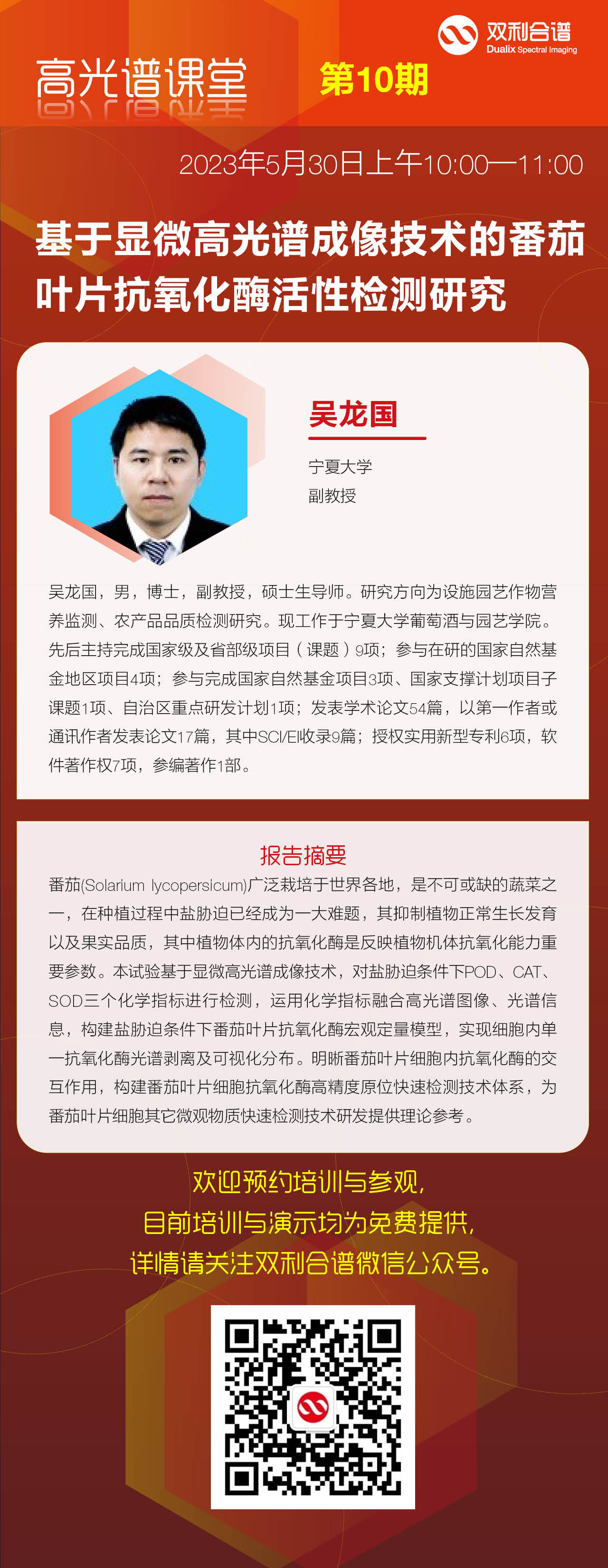 為多方位展現(xiàn)高光譜遙感領域的科研成果和前沿信息,江蘇雙利合譜科技有限公司特別策劃了“高光譜課堂”線上專題講座,我們將定期邀請高光譜遙感相關學科領域?qū)<覍W者開展前沿講座,分享高光譜知識和前沿應用,為您在高光譜成像技術向更寬領域的拓展提供參考。