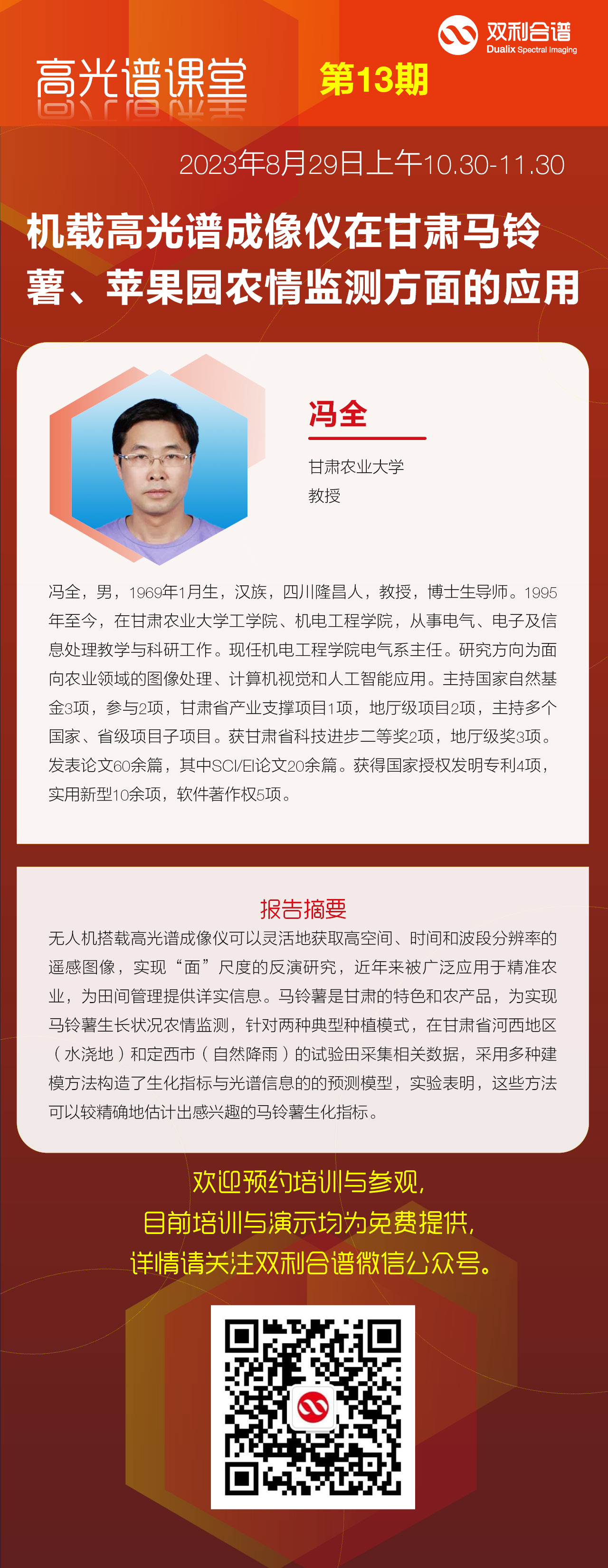 為多方位展現(xiàn)高光譜遙感領(lǐng)域的科研成果和前沿信息,江蘇雙利合譜科技有限公司特別策劃了“高光譜課堂”線上專題講座,我們將定期邀請(qǐng)高光譜遙感相關(guān)學(xué)科領(lǐng)域?qū)<覍W(xué)者開(kāi)展前沿講座,分享高光譜知識(shí)和前沿應(yīng)用,為您在高光譜成像技術(shù)向更寬領(lǐng)域的拓展提供參考。