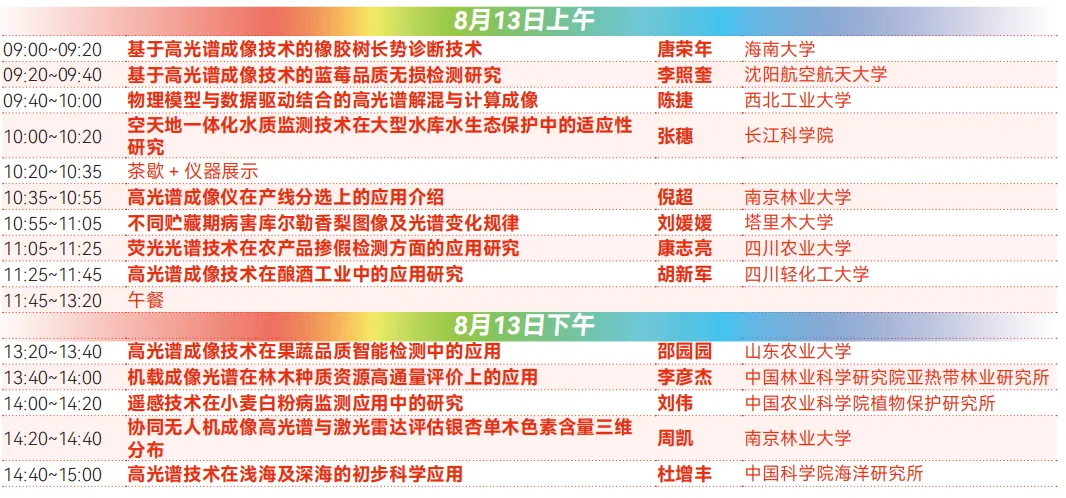 本次會(huì)議聚焦光譜成像新技術(shù)介紹、農(nóng)業(yè)光譜遙感應(yīng)用、光譜圖像分析算法、食品光譜檢測應(yīng)用、林業(yè)光譜遙感應(yīng)用、高光譜目標(biāo)檢測六個(gè)議題,涉及食品檢測、植被遙感、分析檢測、農(nóng)業(yè)遙感、地質(zhì)探礦、水體遙感、分析算法、工業(yè)應(yīng)用、林業(yè)遙感、成像技術(shù)、海洋遙感等多個(gè)領(lǐng)域。會(huì)議以邀請學(xué)術(shù)報(bào)告為主線,其間穿插學(xué)術(shù)前沿展示和高端國產(chǎn)儀器展示,呈現(xiàn)出高光譜遙感技術(shù)的全新精神面貌。