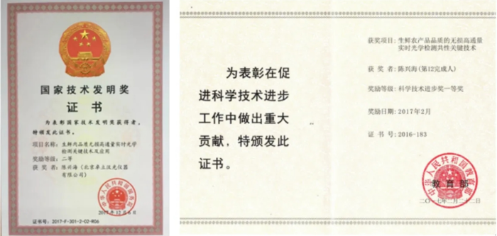陳博士加入雙利合譜以來,他憑借敏銳的市場洞察力和對技術(shù)趨勢的精準(zhǔn)把握,11年來帶領(lǐng)雙利合譜的研發(fā)團(tuán)隊在高光譜技術(shù)的研發(fā)與應(yīng)用領(lǐng)域不斷探索,取得了一系列令人矚目的成果。這些獎項成果不僅是對他們科研工作的高度認(rèn)可,更為產(chǎn)品品質(zhì)檢測領(lǐng)域帶來了全新的技術(shù)手段。通過高光譜成像技術(shù),能夠快速、準(zhǔn)確地檢測生鮮肉及農(nóng)產(chǎn)品的新鮮度、營養(yǎng)成分、病蟲害情況等關(guān)鍵指標(biāo),為保障食品安全、提高農(nóng)產(chǎn)品質(zhì)量、促進(jìn)農(nóng)業(yè)產(chǎn)業(yè)升級提供了強(qiáng)有力的技術(shù)支撐。