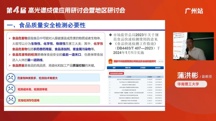 華南理工大學(xué)蒲洪彬副教授為大家?guī)怼陡吖庾V在食品品質(zhì)快速檢測(cè)的應(yīng)用與深度學(xué)習(xí)研究》的報(bào)告。本報(bào)告簡(jiǎn)單介紹高光譜的原理和使用方法,重點(diǎn)匯報(bào)高光譜在果蔬、肉品等農(nóng)產(chǎn)品原料品質(zhì)和過程監(jiān)控中的應(yīng)用成果,并介紹人工智能在高光譜食品品質(zhì)檢測(cè)中的應(yīng)用情況。
