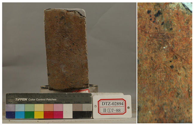 在定陶漢墓中,考古人員發(fā)現(xiàn)大量帶有豐富文字的漢磚,這些漢磚數(shù)量空前,記錄內(nèi)容豐富,對于研究漢代的書法藝術(shù)、人文地理等都是十分珍貴的實(shí)物資料。為了防止墓磚的氧化、變質(zhì)和以后更好地保存,考古人員還將每塊墓磚進(jìn)行了包裝和編號(hào)。這些磚上有用朱砂或墨汁寫的字跡、刻畫的符號(hào)。經(jīng)初步解讀,內(nèi)容多為人名或地名。這些文字中有一些是對墓主人在陰間富貴吉祥的美好祝愿,有一些則是墓磚監(jiān)造人、制磚人、燒窯人的姓名、銘文、或者是代表工號(hào)或工匠字號(hào),地名則有可能表明了墓主人的政治勢力范圍。