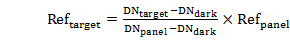 其中,Reftarget為目標(biāo)物的反射率,Refpanel為標(biāo)準(zhǔn)參考板的反射率,DNtarget為原始影像中目標(biāo)物的的數(shù)值,DNpanel為原始影像中標(biāo)準(zhǔn)參考板的數(shù)值,DNdark為成像光譜儀系統(tǒng)誤差。