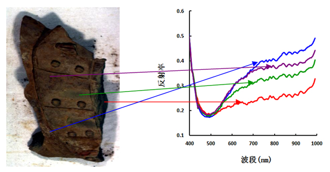 圖8 鎧甲及其不同位置的光譜反射率變化