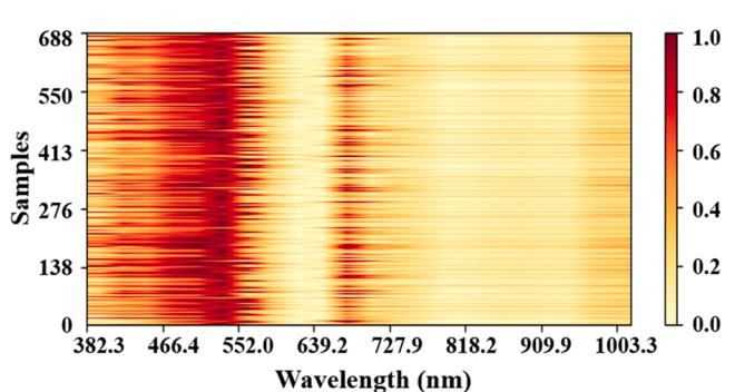 大連工業(yè)大學王慧慧教授團隊使用如圖1b所示的HMI系統(tǒng)采集血液圖片的高光譜數(shù)據(jù)。它由一個image-λ -N17E近紅外高光譜成像系統(tǒng)(江蘇雙利合譜公司)和一個三目生物顯微鏡(Nikon Eclipse 80i)和鹵光源組成。高光譜數(shù)據(jù)的波長范圍為382.3 ~ 1020.2 nm,光譜分辨率為1.8 nm。