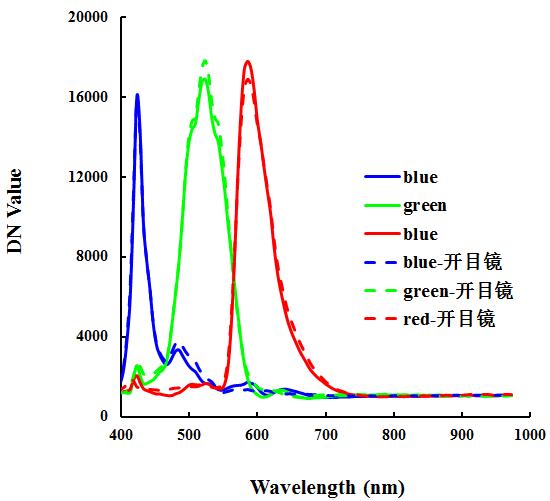 2.2 iphone 6 plus顯微下放大10倍其在開目鏡前后紅綠藍三顏色的光譜變化