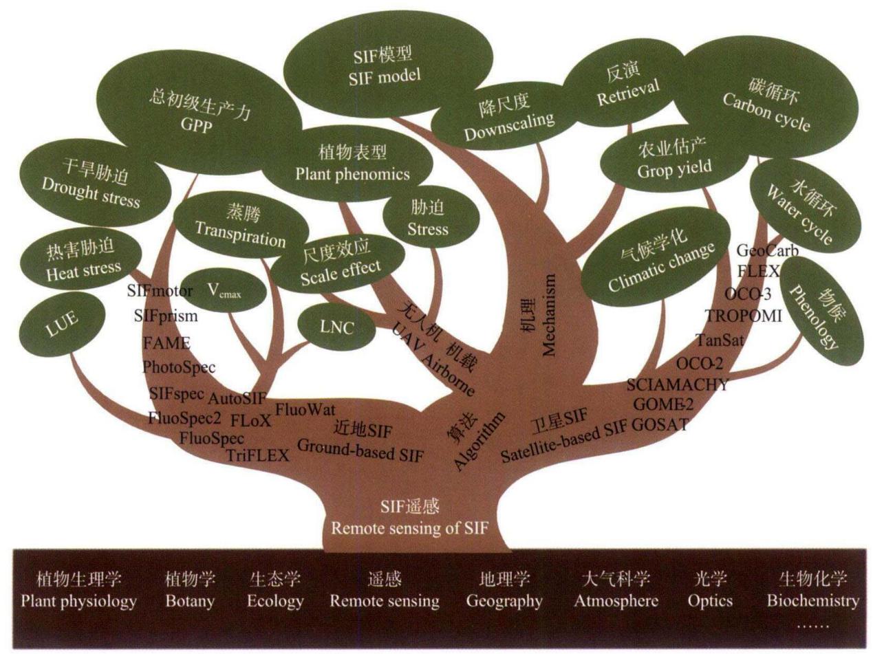 圖2 日光誘導(dǎo)葉綠素?zé)晒?SIF)應(yīng)用現(xiàn)狀概念圖(吳霖升,2022)