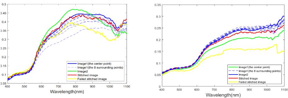 本研究提出了新的高光譜圖像拼接方法,適用于存在旋轉、尺度變化、非剛性變換的圖像集。得到的圖像清晰,無明顯錯誤拼接和接縫,圖像的光譜曲線失真較小,適用于存在大視差的機載高光譜圖像。