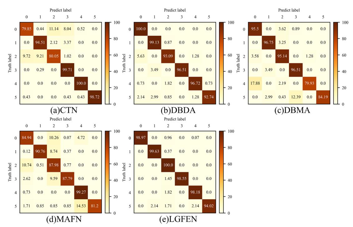 圖6 不同方法的混淆矩陣分類結(jié)果