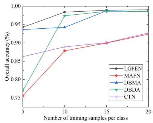 圖7 具有不同數(shù)量訓(xùn)練樣本的OA