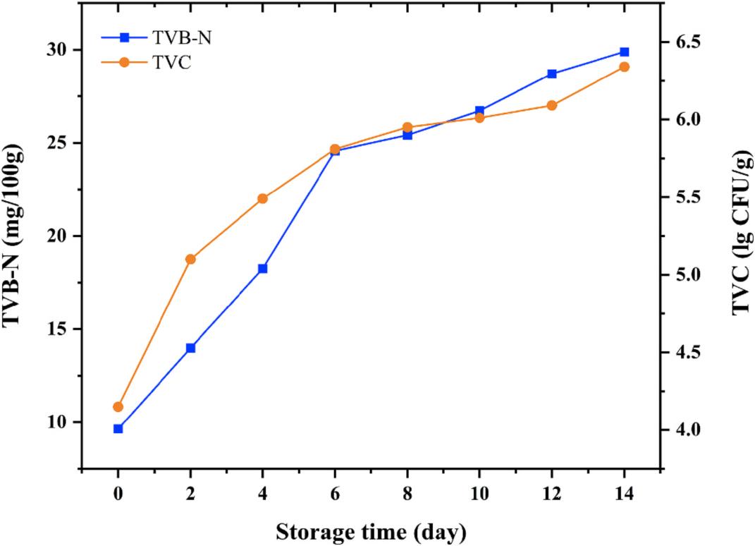 圖2 雞肉樣本TVB-N和TVC含量的變化(儲(chǔ)藏期14天)