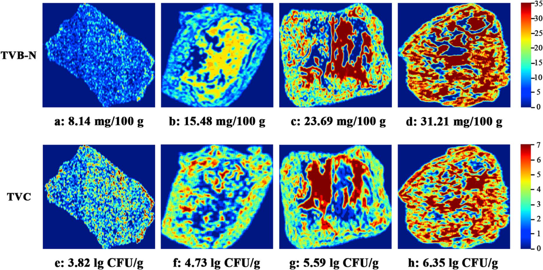 圖5 TVB-N和TVC含量從低到高的可視化和分布圖