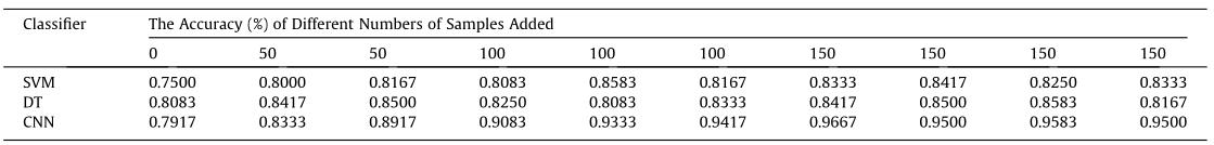 表3 不同分類器在加入不同樣本數(shù)的測試集上的準確率