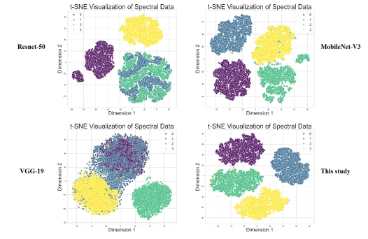 圖3展示了不同疾病類型的平均光譜曲線的趨勢,由于其來自相同的腎組織,曲線趨勢一致,但在特定波段的反射率值存在細(xì)微差異,表明不同疾病的內(nèi)部組成差異。