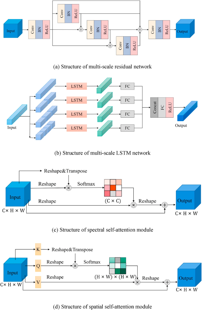 圖1.多尺度殘差網(wǎng)絡(luò)、多尺度LSTM網(wǎng)絡(luò)和自注意機制網(wǎng)絡(luò)的結(jié)構(gòu)