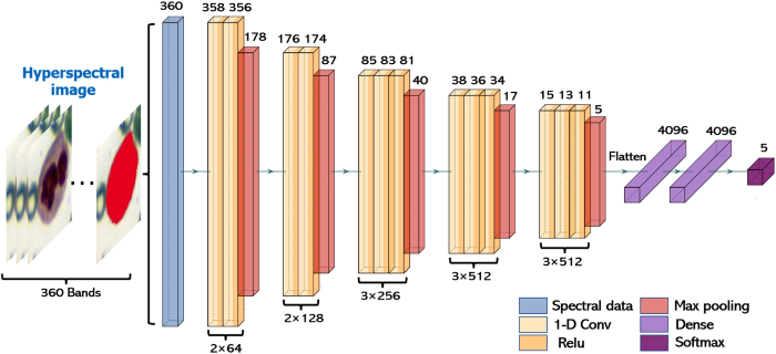 圖2. 基于光譜數(shù)據(jù)的一維卷積神經(jīng)網(wǎng)絡(luò)(1-D CNN)結(jié)構(gòu)。