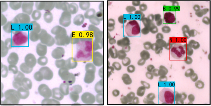 圖5. 基于偽彩色圖像的Faster R-CNN檢測(cè)白細(xì)胞的結(jié)果。