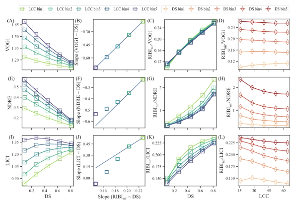通過(guò)靈敏度分析與因子分離(disentanglement analysis),團(tuán)隊(duì)發(fā)現(xiàn):葉綠素含量(Leaf Chlorophyll Content, LCC)是造成病害監(jiān)測(cè)誤差的主控因子。稻株在不同生育期葉綠素含量差異顯著,而RIBI(Rice Blast Index)這一病害指數(shù)同時(shí)對(duì)葉綠素與病斑均敏感,導(dǎo)致輕病樣本常被誤判。