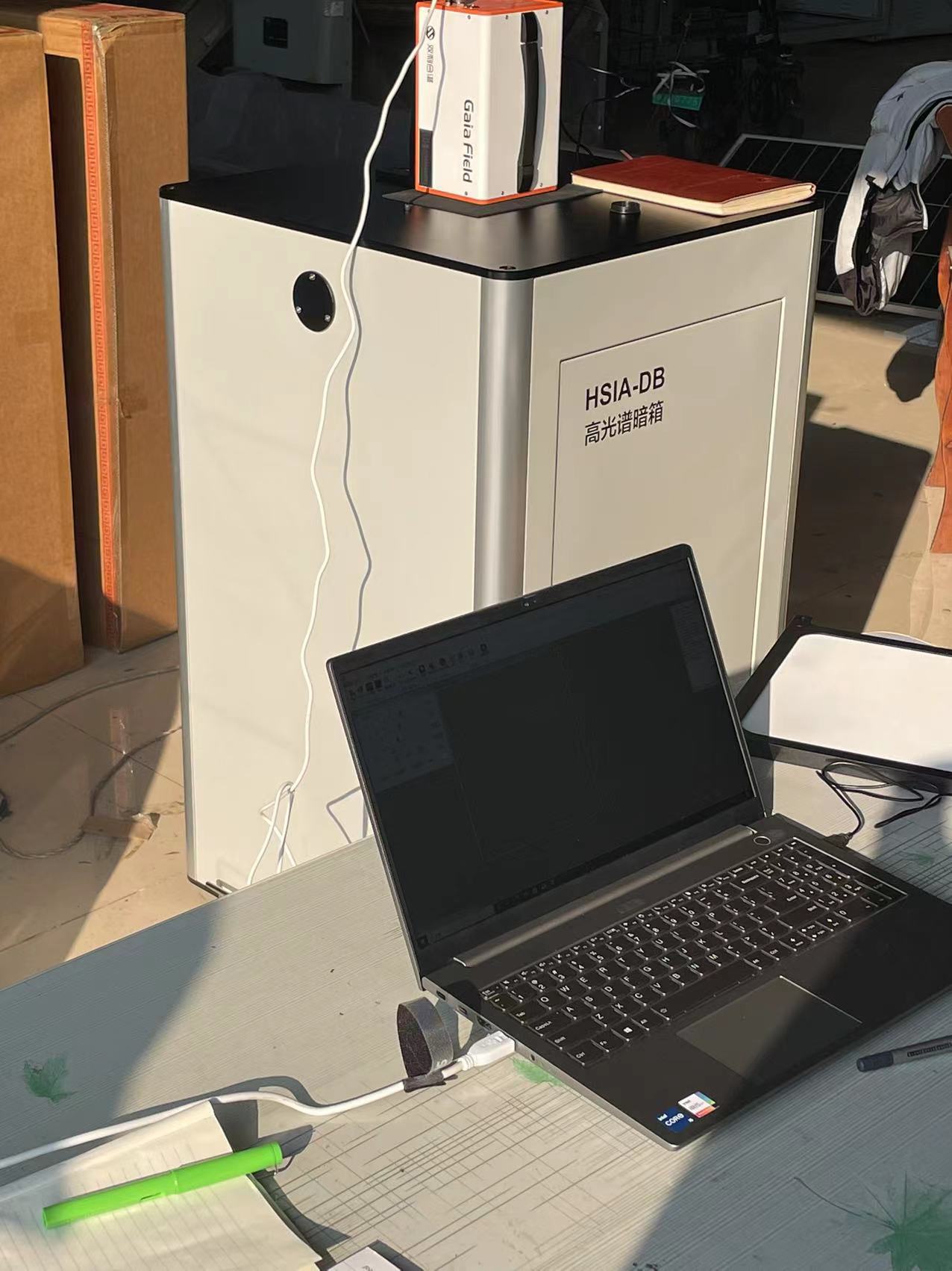 本次培訓(xùn)產(chǎn)品為雙利合譜自主研發(fā)生產(chǎn)的高光譜成像系統(tǒng)GaiaField-V10+DB暗箱。日照農(nóng)科院老師們與我司工程師全程參與培訓(xùn)。