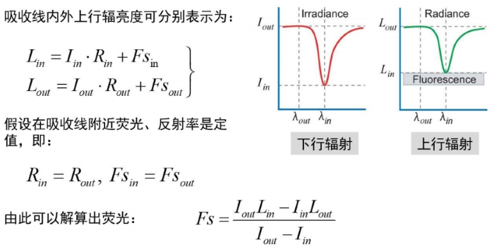 日光誘導葉綠素熒光(SIF,Solar-Induced chlorophyll Fluorescence)反演機理:太陽輻射譜線經(jīng)過太陽大氣和地球大氣中各成分的吸收,到達傳感器時存在寬度不等(0.1nm-10nm)、深度不同的吸收谷,稱為夫瑯和費暗線(Fraunhofer Lines)。SIF作為地表發(fā)射信號,疊加于反射信息之上,改變了夫瑯和費暗線的深度,利用SIF對夫瑯和費暗線的“井”填充效應,通過比對原始暗線深度及經(jīng)SIF填充后的暗線深度,可以實現(xiàn)SIF的遙感反演。由于反演SIF至少利用一條夫瑯和費暗線,且對于任意一條暗線,傳感器的光譜分辨率愈高,觀測得到的原始暗線深度愈深,SIF對暗線的填充效應愈明顯,則SIF反演的魯棒性愈強。因此,SIF的遙感反演需要在高光譜分辨率條件下實現(xiàn),其核心問題為如何準確得到未被熒光填充的原始暗線和被熒光填充后的暗線。