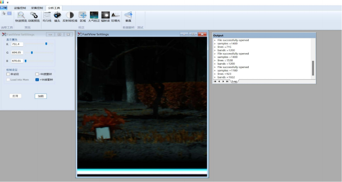 首先,需要對原始的DN值數(shù)據(jù)進行實時反射率校正處理,系統(tǒng)軟件設置有存儲對應白幀和暗背景數(shù)據(jù)的文件夾,在執(zhí)行采集之后,會自動進行反射率校準;其次,結合選擇的數(shù)學模型,可輸出對應的模型指標的反演結果。
