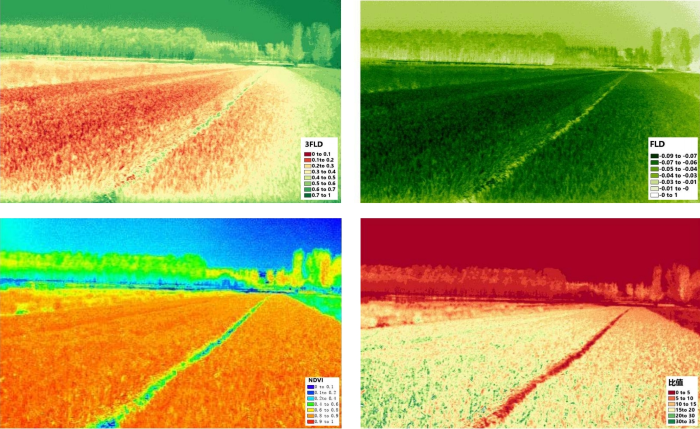 • 植被指數(shù):歸一化指數(shù)N DV I、比值指數(shù)SR、改進的葉綠素吸收反射指數(shù)MCARI、改進的葉綠素吸收反射指數(shù)1MCARI1、最優(yōu)化土壤調整植被指數(shù)OSAVI等,也支持自定義波段計算公式。